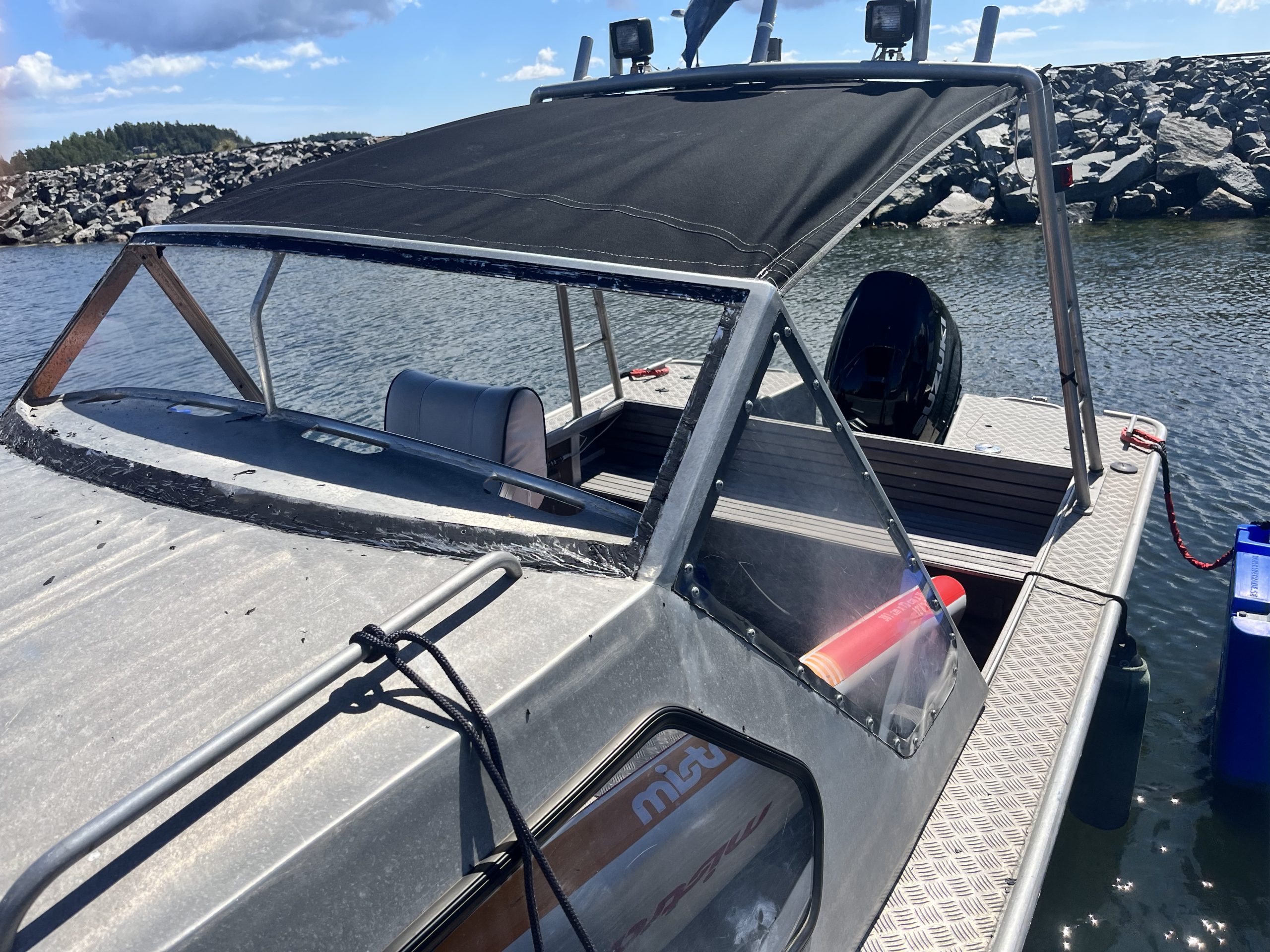 Båten visas utomhus ovanför Rindö Hamn, ring eller mejla för att boka visning.