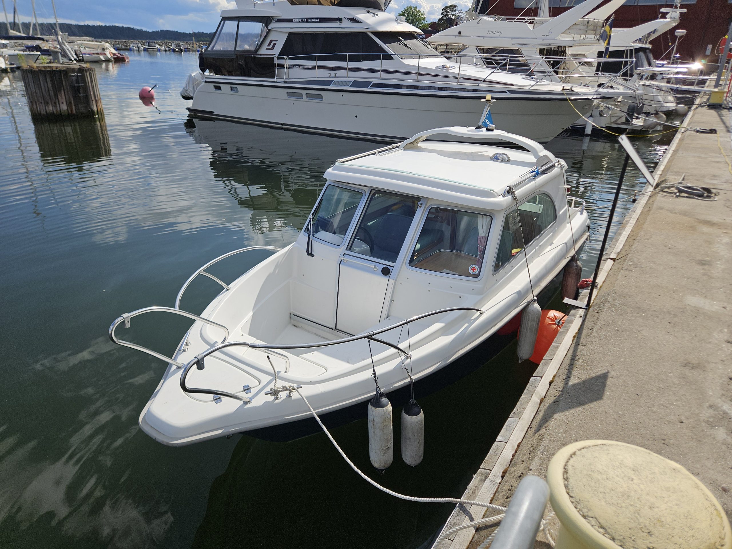 Båten visas vid vår försäljnings brygga i Rindö Hamn, ring eller mejla för att boka visning. Finnmaster 6101 MC-2001 Mercruiser 3,0l 135hk-2001 Sötvattenkyld