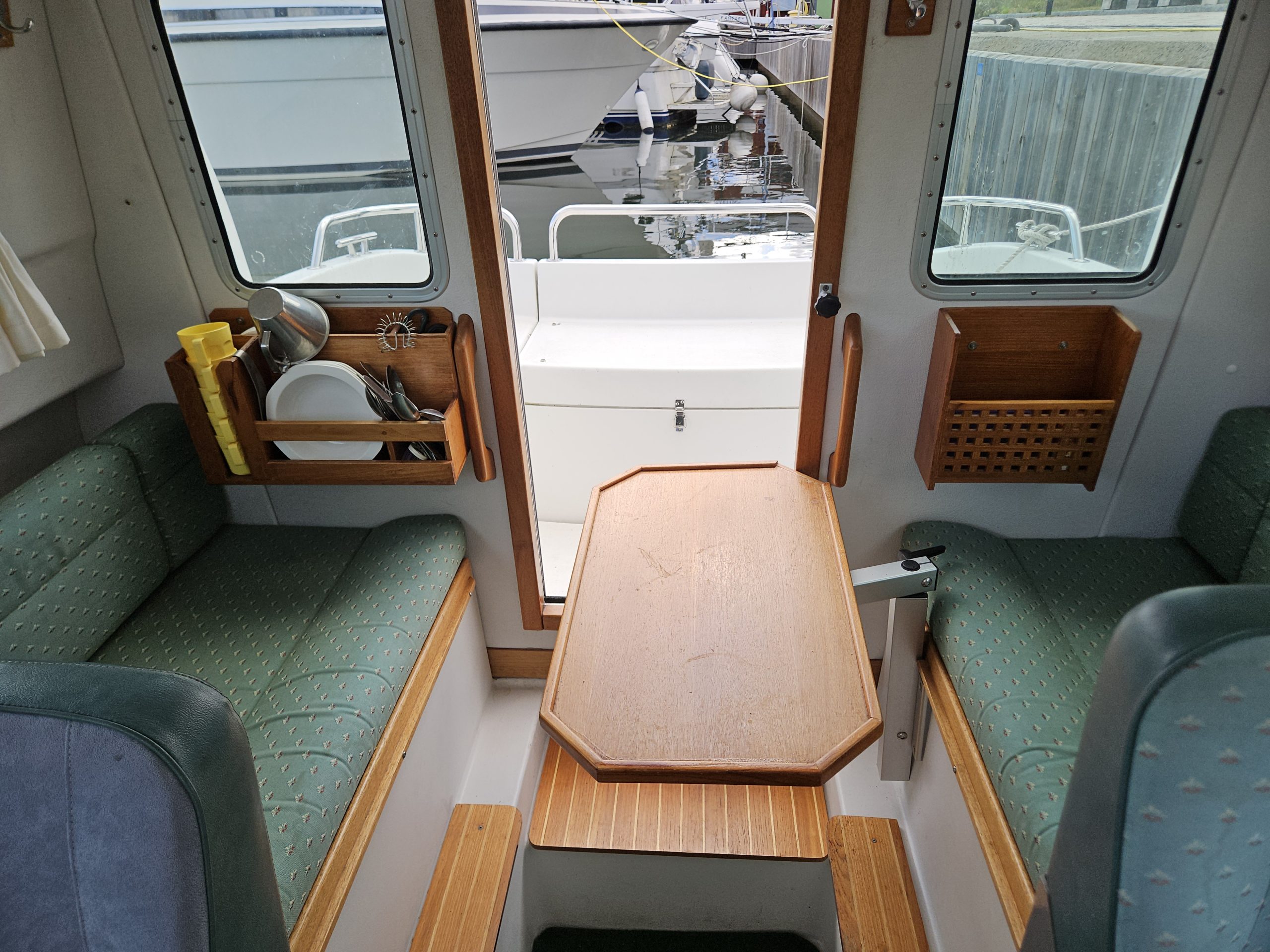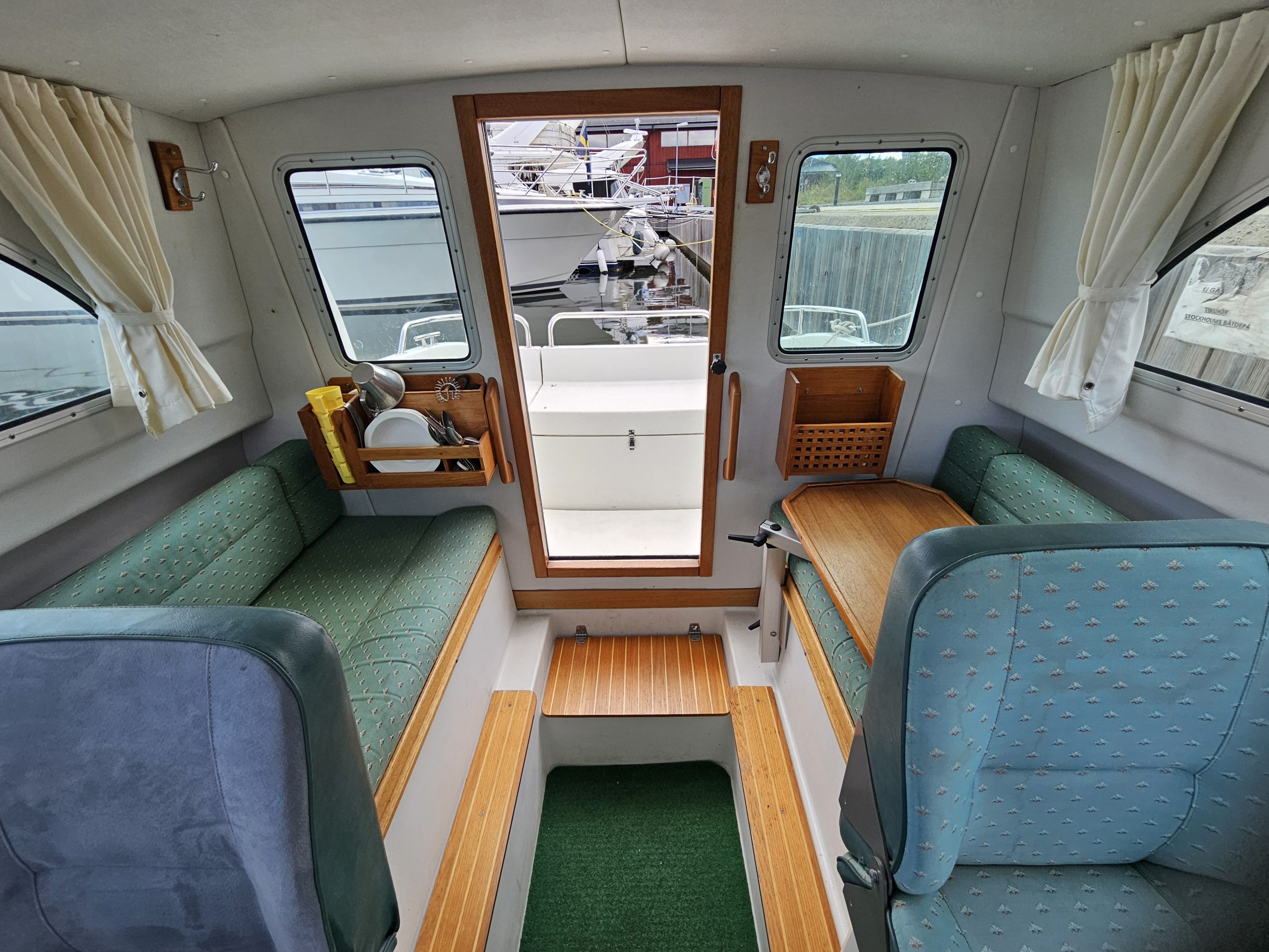 Simrad plotter, Badplattform, Badstege, Spritkök, Vask, Färkvatten med kran, Trimplan, Vindrutetorkare, Gångvärme, Bord, Sovplats 2+1